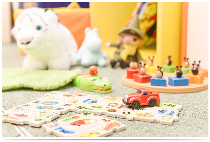 当院は「キッズスペース」を設置しております。受付から見える場所ですので、親御さんにも安心して治療に集中していただけます。 また、「個室診療室」も完備しておりますので、親御さんに同席していただくことも可能です。他の患者さんに迷惑をかける心配がありませんので、泣いてしまう子もご安心ください。